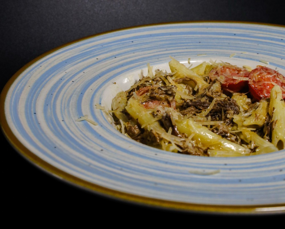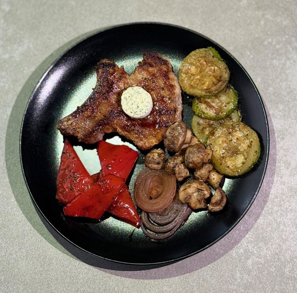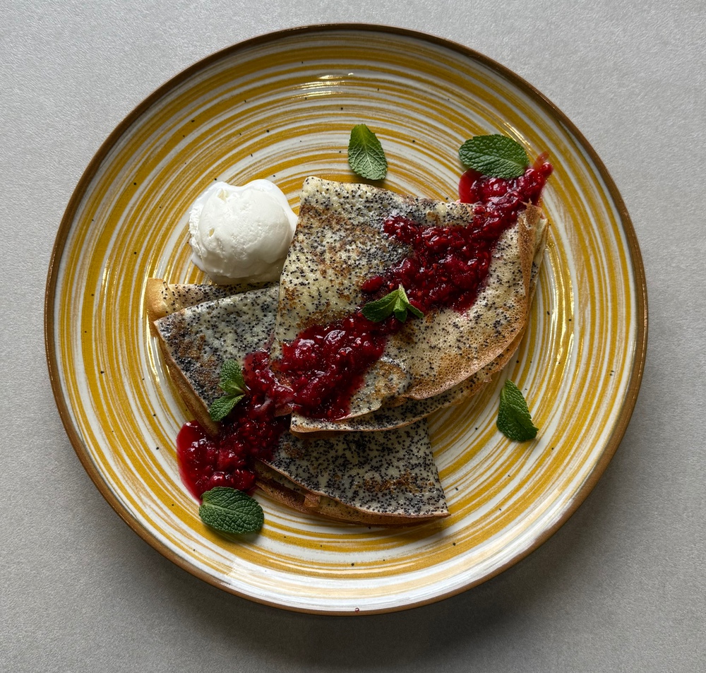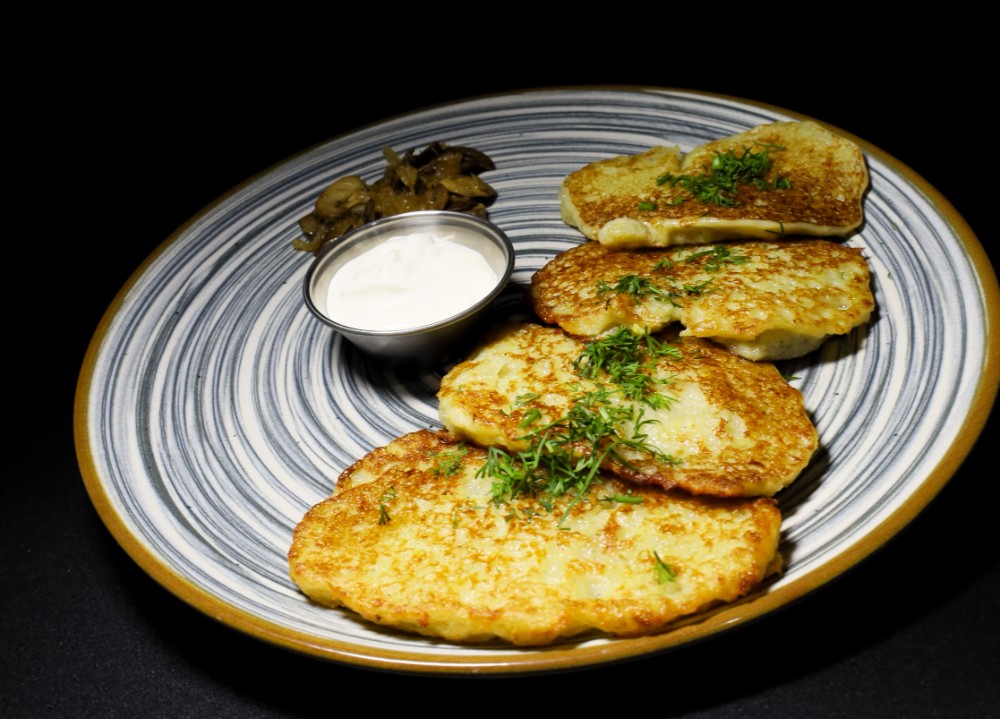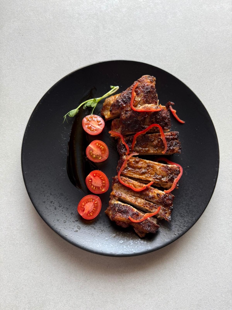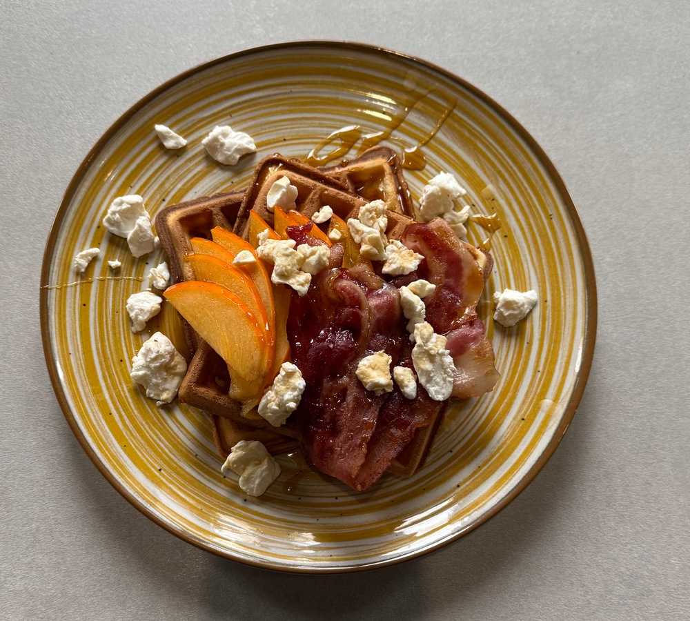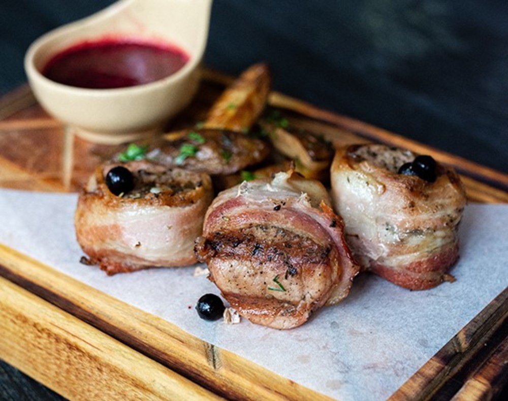 Медальйони в беконі з вишневим соусом та картопляним пюре