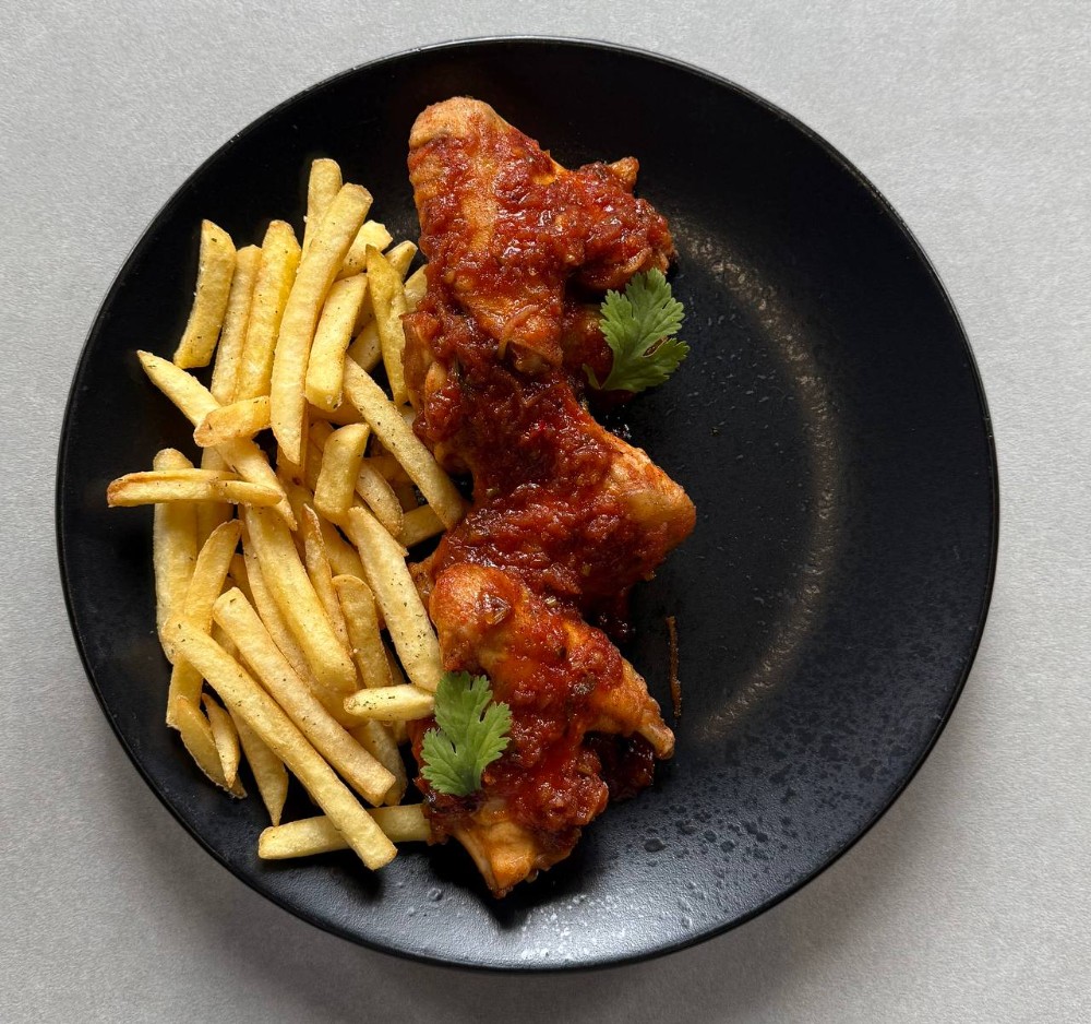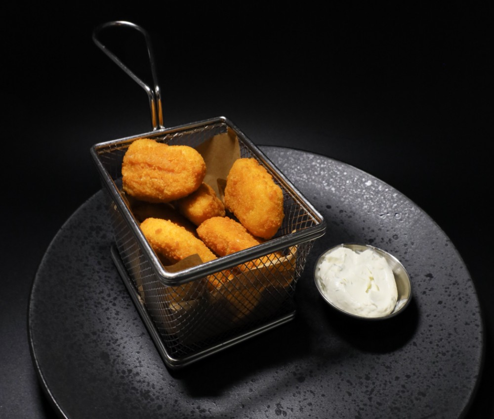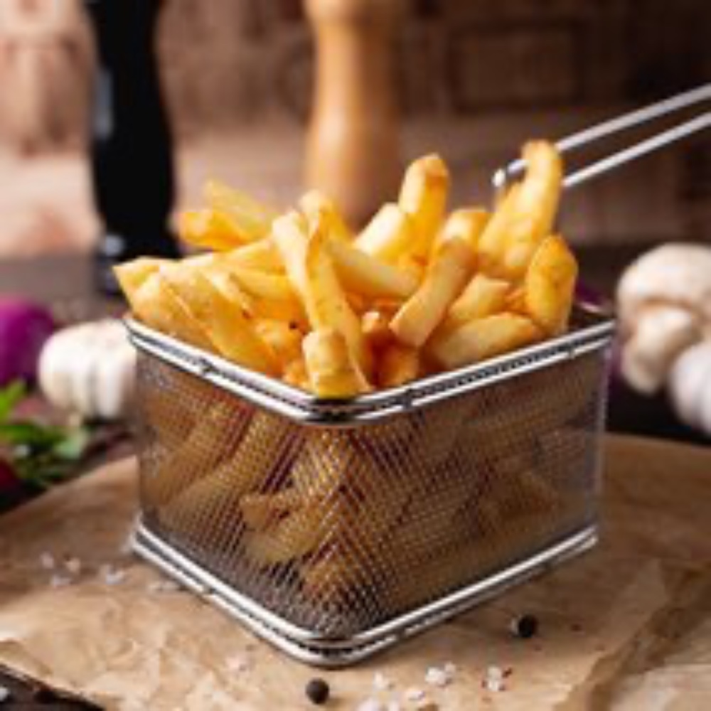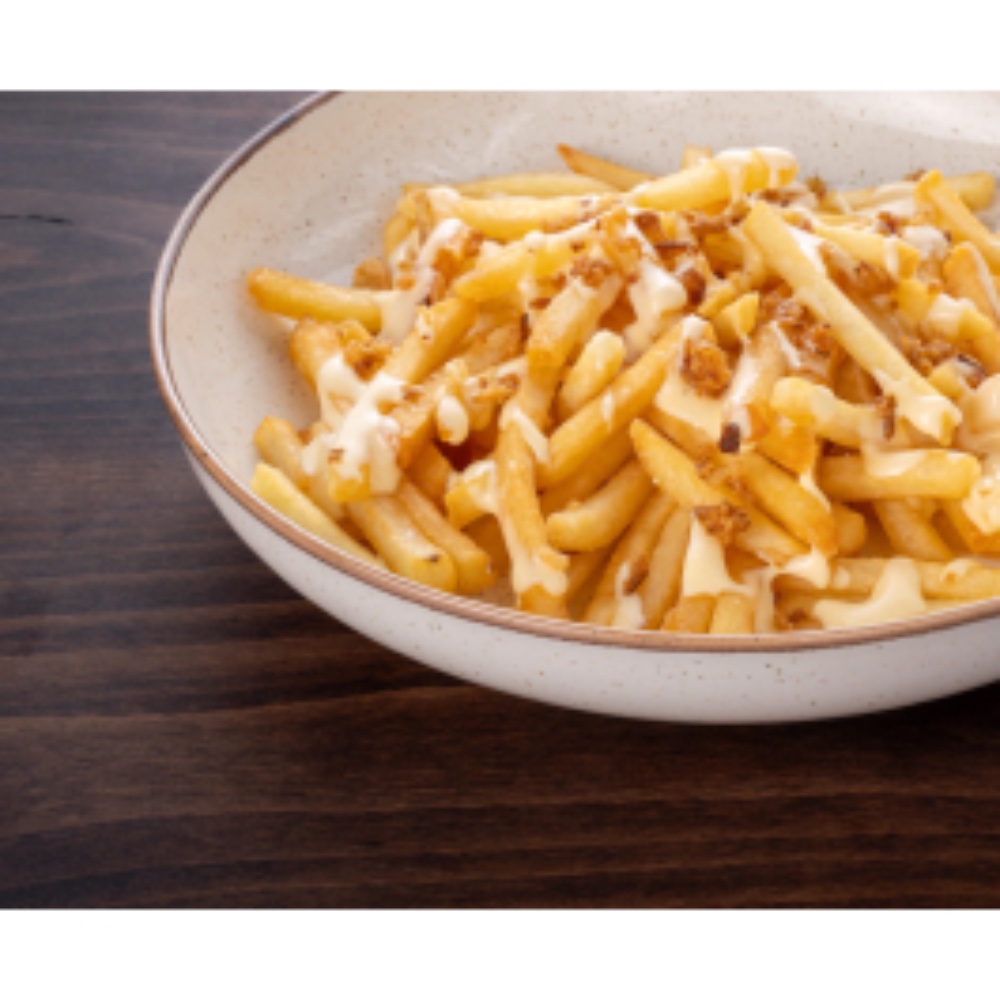 Картопля фрі з трюфельним соусом та цибулевим кранчем
